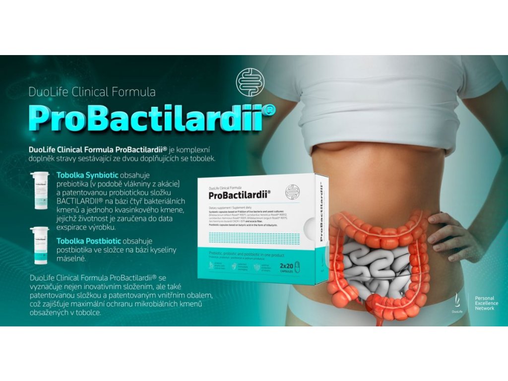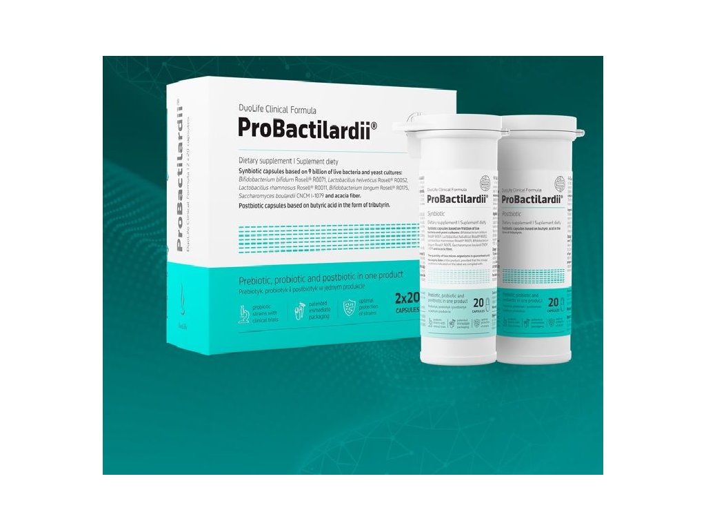 POSTBIOTIKA jsou definována jako kombinace všech bioaktivních složek vytvářených bakteriemi, například během fermentace, které jsou prospěšné pro lidský organismus. V přípravku ProBactilardii® je použitá také kyselina máselná. Přirozeně ji vytvářejí bakterie v tlustém střevě a její užívání v doplňcích stravy může podporovat účinek kyseliny máselné vytvářené ve střevech.